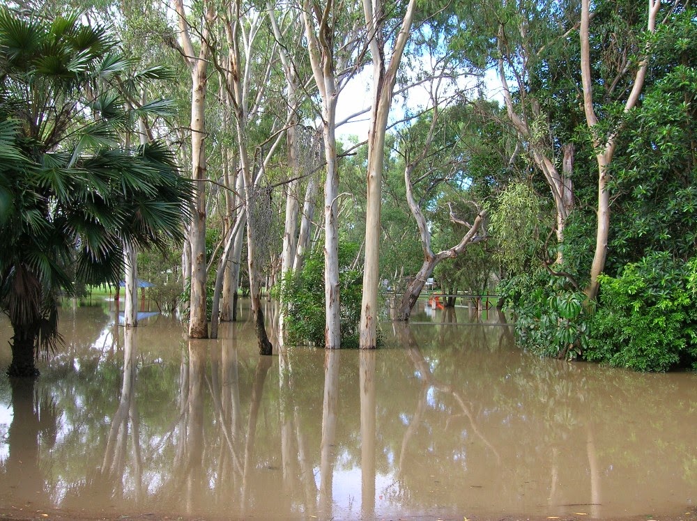 The Fitzroy River in flood. While the river is flooding, and it has made headlines on National TV - in fact there is very little risk to most residents (and it is a long way from my house). Darryl and I cycled around on Saturday morning (2 Feb) and took photos around the riverbank. The views from Mt Archer of the city were taken the day before by Darryl. Swirling floodwaters flooding down the Fitzroy River. Big clumps of water hyacinth are being washed down. Notice the train going North over the railway bridge.