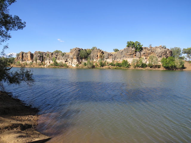 The door on the camper had some issues so Darryl fixed it. We drove back to Fitzroy Crossing and were hoping to go to the Tourist Information, but apparently tourists only come to this area during the week! (It was closed). We had morning tea and I did some work while Darryl fixed the reversing camera which was hanging by its wires. We made it to Geike Gorge in time for lunch. It was stinking hot, but we walked along the Fitzroy River and saw some freshwater crocs sunning themselves on a sandbank.