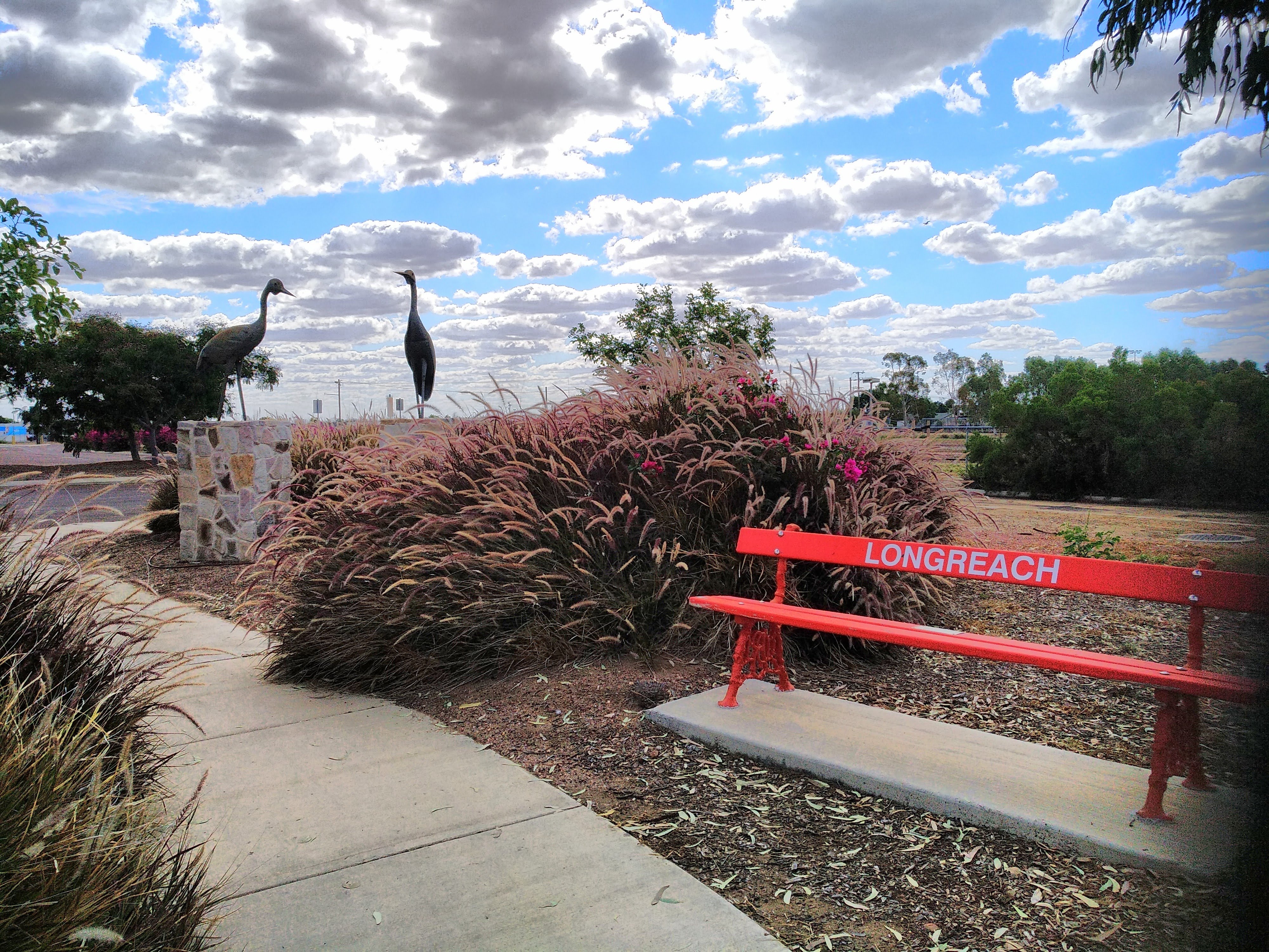 The country changed again as we headed to Longreach, and became quite dry again. We did a little shopping while Darryl adjusted the bearings on our trailer, then had lunch before hitting the road again, heading east towards Barcaldine for fuel, water and the tourist information centre (which was on the cusp of closing).
